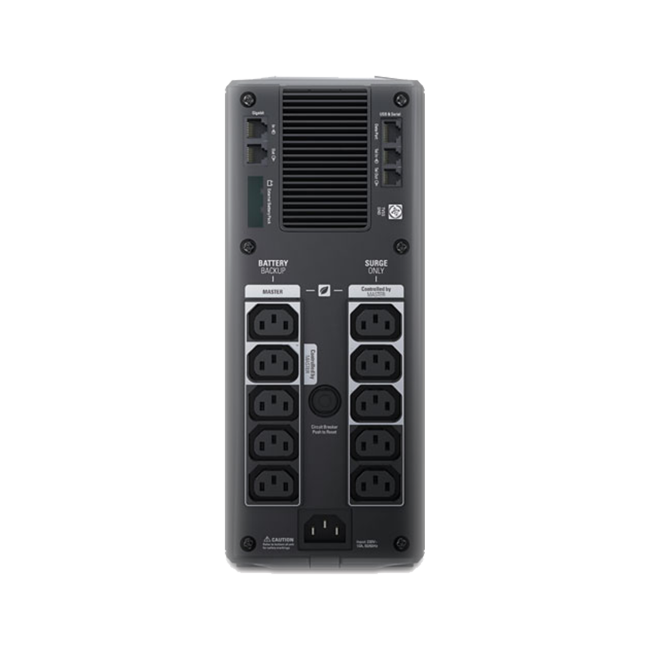 | Gniazda wyjściowe | (5) IEC 320 C13 (Zasilanie zapasowe) (5) IEC 320 C13 (Ochrona przeciwprzepięciowa) (2) IEC Jumpers (Zasilanie zapasowe) |