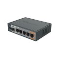Urządzenie jest konstrukcyjnie bardzo zbliżone do RB750Gr3 (ten sam procesor i pamięć), ale dodatkowo zostało wyposażone w 1 slot SFP, wyjście PoE na porcie Ether5 oraz wejście PoE na porcie Ether1. Router posiada port USB i slot na karty microSD.