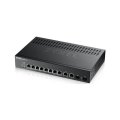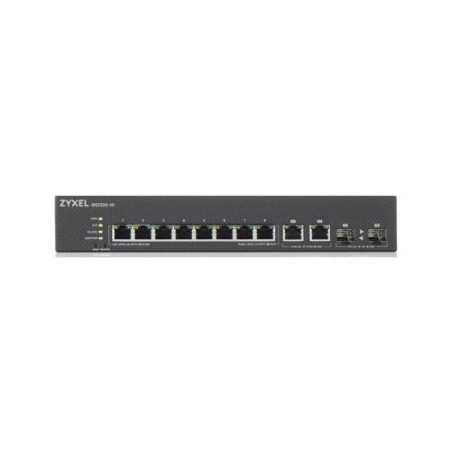 Zaprojektowany do sieci konwergentnych 10-portowy model GS2220-10HP-EU0101F, oprócz 8 portów Gigabit Ethernet, jest wyposażony w 2 dodatkowe porty Combo (RJ-45/SFP), umożliwiające połączenia światłowodowe w oddalonych instalacjach.